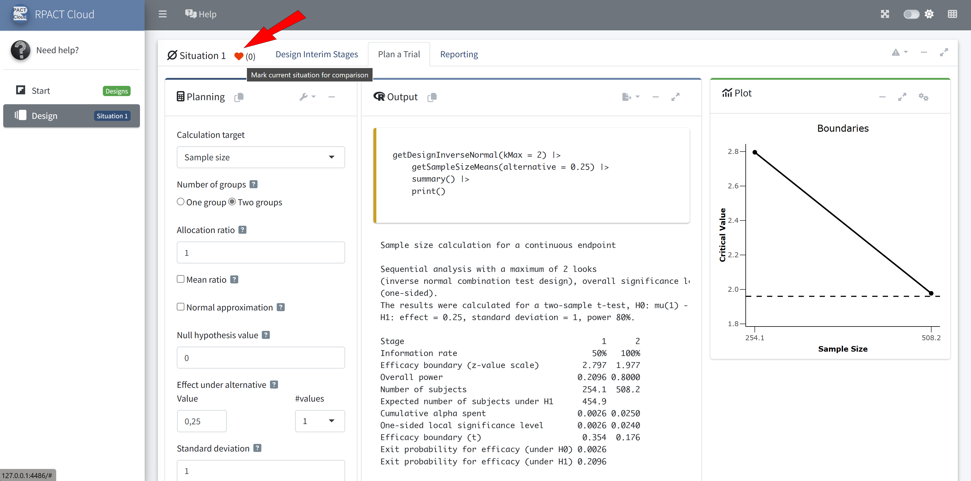 - Cumulative alpha spending: 0.0002592, 0.0071601, 0.0250000