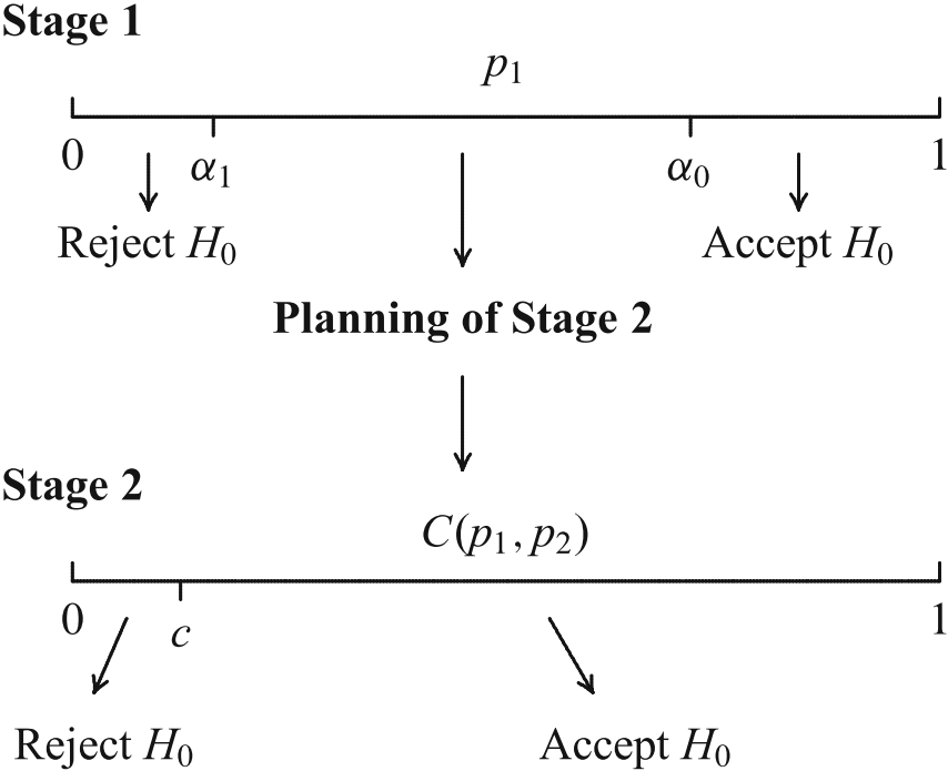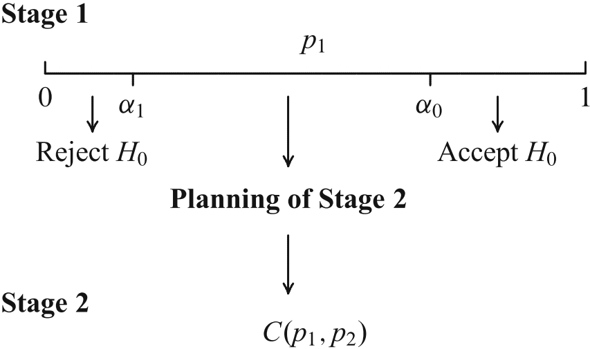 Bauer and Köhne (Biometrics, 1994): Combination of \(p\,\)-values with a specific combination function (Bauer, 1989)